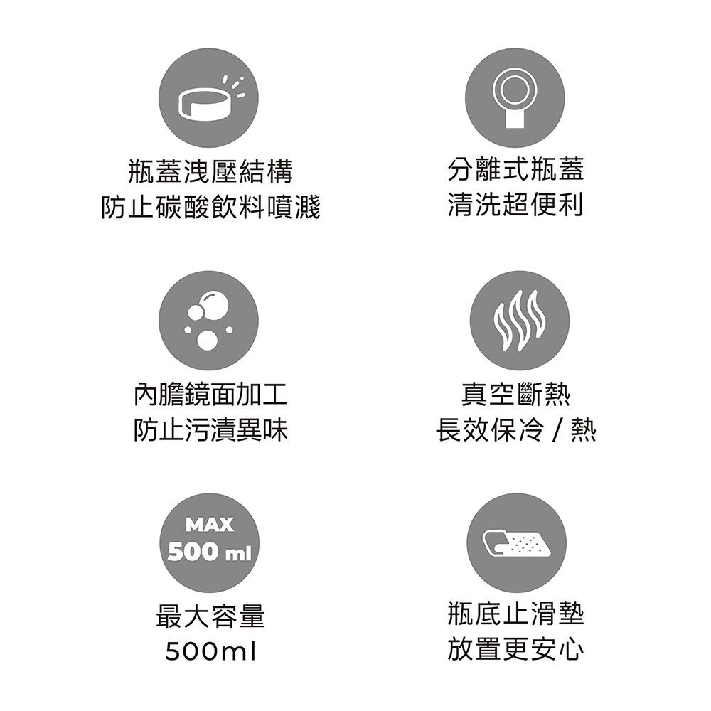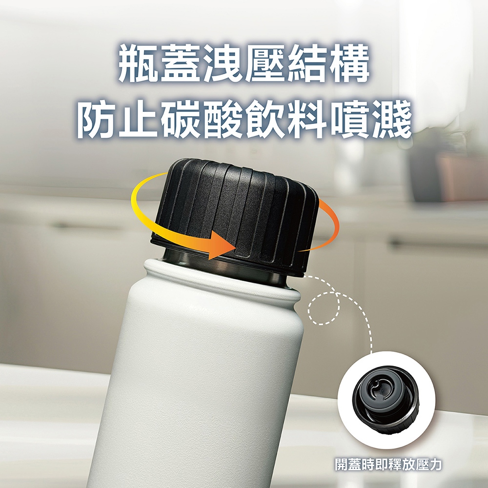 專為碳酸飲品設計的 防噴洩壓瓶蓋,開蓋瞬間自動釋壓,