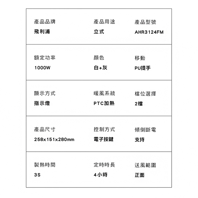 Philips 飛利浦 AHR3124FM 多功能暖風機搭載PTC陶瓷加熱技術,能在短時間內快速升溫,與傳統加熱方式相比更加穩定且節能。