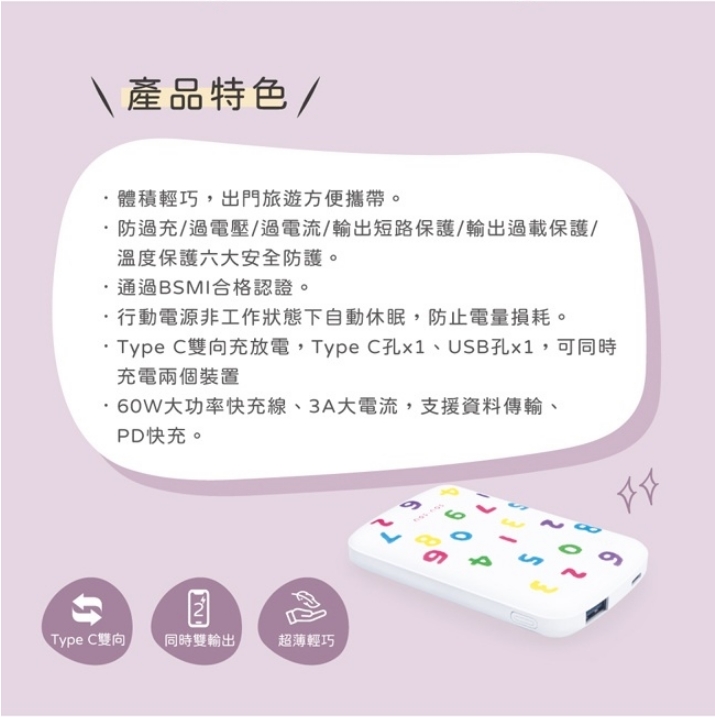 輸出電壓/電流:Type C埠:5V⎓2.1A、USB埠:5V⎓2.1A