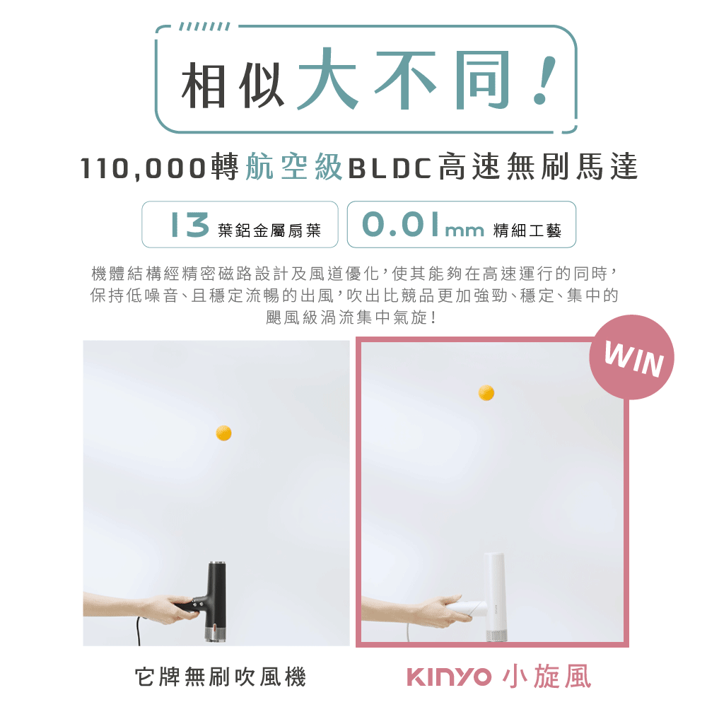 💨 11萬轉BLDC無刷馬達|低噪穩定,颶風級強勁風速,快速乾髮不拖延