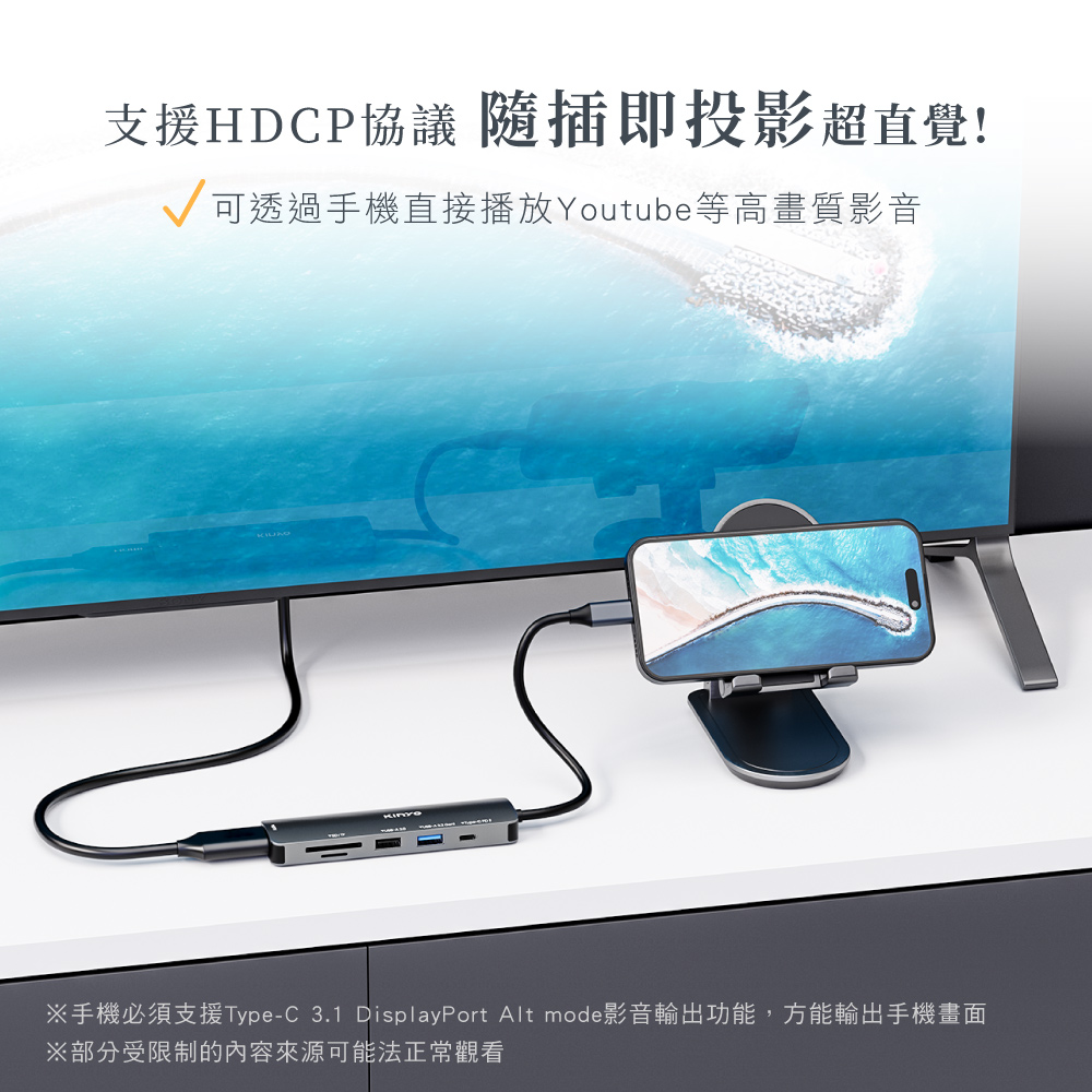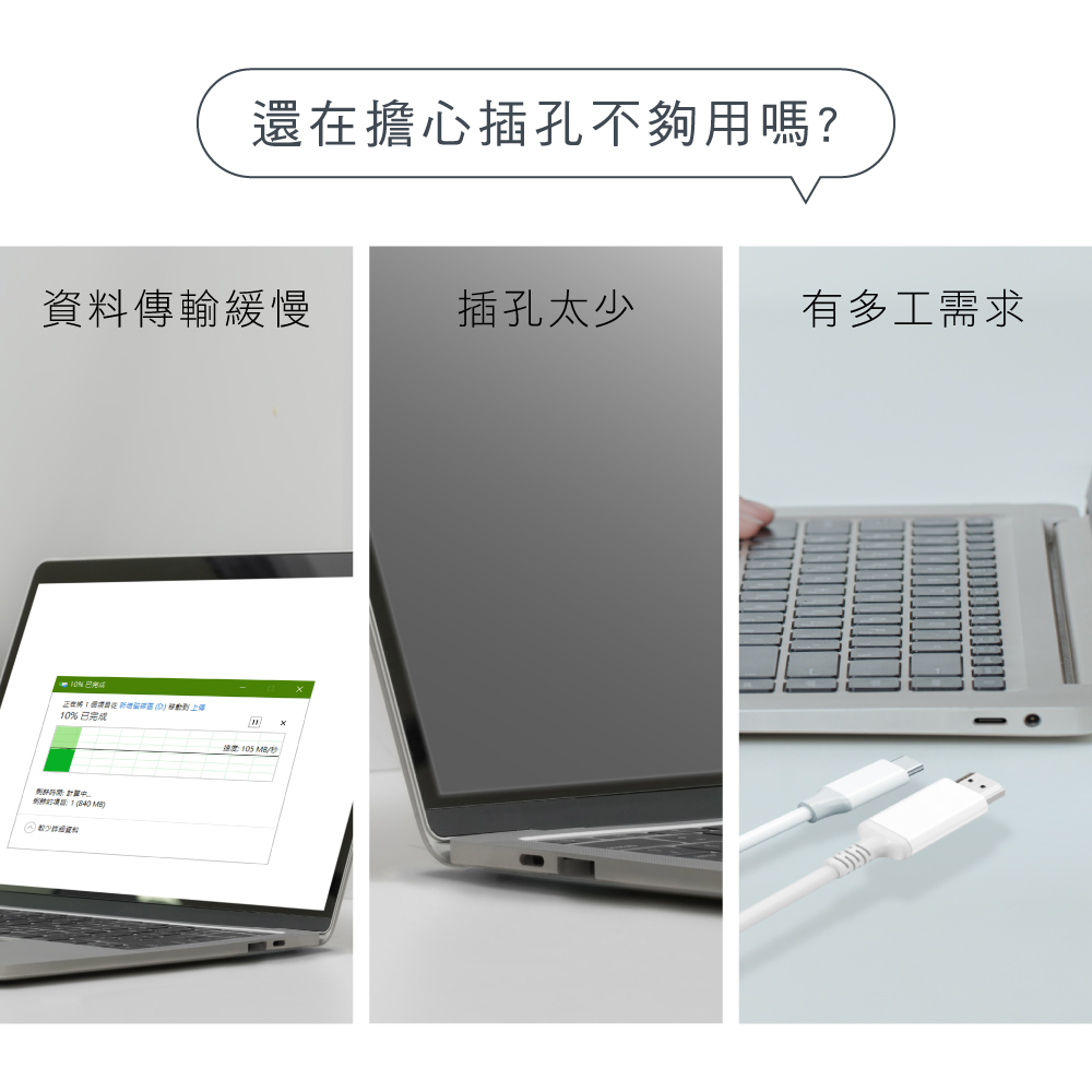 同時支援 PD 100W 快充、高速 USB 3.2 Gen1 傳輸、4K UHD 螢幕輸出與 OTG 擴充功能。